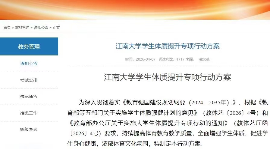 近日,江南大学发布了一项有关学生体质提升的专项行动方案,明确针对肥胖、体质偏弱的学生开设必修减脂、体适能课程,以期通过教学安排促进学生改善体质。消息一出,有关“如何开好体育课”等话题引发广泛热议。